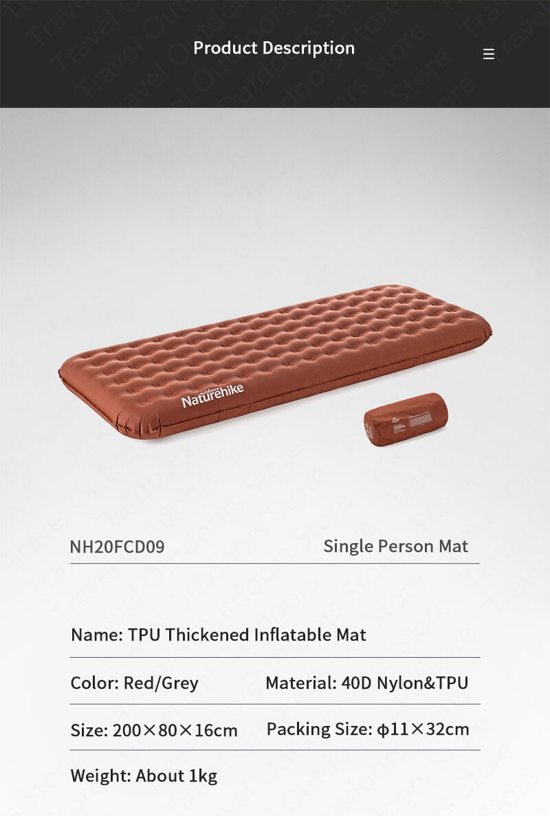 Naturehike 1-2 Persons TPU Thickened Inflatable Mattress Camping Siesta Portable Waterproof Outdoor Mat NH20FCD09